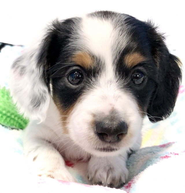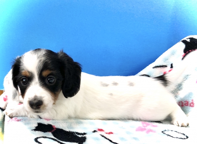 ミニチュア・ダックスフンド(ロング) ブラックタン パイボールド ♀(女の子) 神奈川県【 ブリーダーズ 】