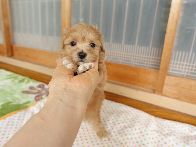 | コメント | マルプー パパ(プードル)とママ(マルチーズ)のMIX犬 若いママのお産で前回全国にご縁した子達が2~3k前後の小さく容姿も可愛い成犬になっています。 両親の良いとこ取りの鼻、足胴が短く毛抜けなく衛生的。 賢さ際立つマルプーです。 片手で抱っこお出かけも楽々な子達です。 ★法的なお迎え時期は49日からですが、一生の内で最も環境が変わりストレスとなるとされるお迎えの時です。 みんなや私共人とも触れ合いで社会性を身に付け、心身共に健全になる生後2カ月からのお迎えとなります。 リビング育ちママに自然な乳離れ迄付いて愛情を一身に受け伸び伸びと育ちました。 6頭兄妹で全頭欠陥無く私共の介助されることなく、どんどん母乳を吸い只今、母乳の他にやわらかフードも食べるようになり健康頼もしい子達です。 兄妹の中で一番小さな子犬らしい天真爛漫甘えん坊です 自然な乳離れで育つ子達は統計的に情緒が安定、賢く長いくするとされています。 ママのマルチーズの目の真ん丸、短い脚と鼻の可愛さ等、パパのくるくる巻き毛、賢さ素直さ等両親の良いとこ取り。 獣医師の健康診断で欠陥無く健康状態は良好 歯磨きして歯周病菌に犯されない丈夫な身体をと歯磨き遊び、歯のケアの大切さもご指導しています。 20歳越えの元気な長寿を目指してください。 飼ってみて、違いが分かる大変育てリビングで刺激がいっぱいなので賢さが際立ちます。。 MIX犬の為、血統書はありません。 パパ:トイプードル2.8k レッド ママ:マルチーズ3.2k 別途料金 空輸代¥20000 混合ワクチン代1回済 ¥6000 消費税はサービス。 各種カード決済可能(決済料当方負担) ★長生きの秘訣 お迎え時に直接来店では無く空港等遠隔の場合でも飼主様が楽ちん子犬が自分で歯磨き習慣が身につく方法をご指導しどの子もできるようになっております(お迎え後の確認済) ※飼い始め応援!・・躾、健康面のケア、スターターグッズ等いろいろなご質問にお答えし、店舗を町に構えるショップよりネット注文が安価の傾向です。ゲージ等特に大きな商品は玄関に宅急便で届き楽、ネット注文苦手な方はお手伝いします。 安心して直ぐに飼い始められるようお気軽にお尋ねください。 ★健康状態・・良好 混合ワクチン済・健康診断良好・駆虫済での安心お渡し初対面の方にも吠えず、抱いて暴れることも無く人懐こいです。生後早い時期のお迎えは情緒も不安定で自己中になりがちで躾も困難です。 (健康診断書とワクチン証明書有添付) ★環境・・・ 躾の基本は、飼い主様が完全上位に立ち子犬が従順であることだと言われています。従順さはママを観て育ってますので培われています。 親から早く離されたり、兄弟仲間と遊んだ経験の少ない子は突然理由なくキレたり、獰猛だったりと昨今、問題視されています。 明るく元気ですが、聞き分けが良く吠えずお隣等が近いマンションにも適した穏やかさです。 ★トイレの躾 ゲージの中でのトイレトレーニングは躾済でお渡し。お迎え後の違った環境では変化することもありますので、その際にはお気軽にご相談ください。 *アニコム動物保険の代理店 (動物保険会社では、倒産した時に国が保証する2つの保険会社の1つ)手厚い補償で好評の日本最大の動物保険会社です。(ブリーダーショップとしては、当店が唯一認定店)・・・アニコム1ヵ月100%動物保険プレゼント。 ※ 動物取扱士・家庭犬トレーナー・トリマー・小動物看護士・ペット繁殖指導員の居るブリーダーショップ ★アフターフォロー:繁殖直売のブリーダーショップで、ブリーダー(繁殖者)や中間業者やペットショップに渡すことをしないで、一般ご家庭の飼い主様にのみお迎えいただいております。 <プレゼント> ★ アニコム損保動物保険すまいるべぃびぃ(当ブリーダーショップ代理店からのプレゼントで手続きは当方で全て行いますので、飼い主様による手続きは一切ありません) ★ わんこ母子手帳(全国ペット協会会員) ★ 慣れたフード ★ 躾のDVDと本 ※ 飼い主様スターター準備のお手伝いを無料でします。お気軽にお尋ねください。ゲージ・トイレトレー・フード皿・ベッド・給水器・サークル等 ★ 多種カード会社認定店・・・VISA・Master・UC・JCB・AMERICANEXPRESS・Nicos・Diners・DC・UFJ 決済手数料の5%は当店がお支払いサービスとなっています。 ★ 引越や旅行・夏・冬等の計画でお迎え延期でも無料でお預かり。 ペットホテルご利用は、当方出身の子のみです。育った実家でストレス無く伸び伸びと過ごすことができるようにし飼い主様に安心していただいております。その節はご利用ください。 ★仲介販売手数料・・空港等でお迎えの際に中間業者が当方代理で子犬を引渡しします。 当然、説明は当方が十分にお電話やライン、メールにて伺いますが、熟練したブリーダーに中間業者依頼しておりますので、面会時にも獣医師の健康診断書に基づいて身体チェック、他質問等受けております。 (お迎えの際の業者により違い