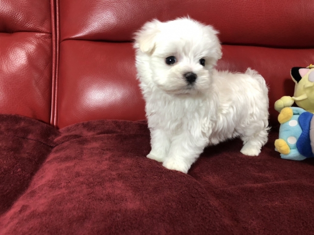 今回、素晴らしいご縁に恵まれて可愛いマルチーズの男の子を迎えることが出来ました。最初の問い合わせから現在に至るまでスムーズな連絡と親切な対応をして下さり、今後も何かあれば聞いてくださいと心強いお言葉をかけていただきました。とても信頼出来るブリーダーさんです。仔犬は小柄ながら元気いっぱいで、人懐っこく可愛い子です。これから精一杯、大切に育てていきたいと思います。 本当にありがとうございました。(大分県 女性)