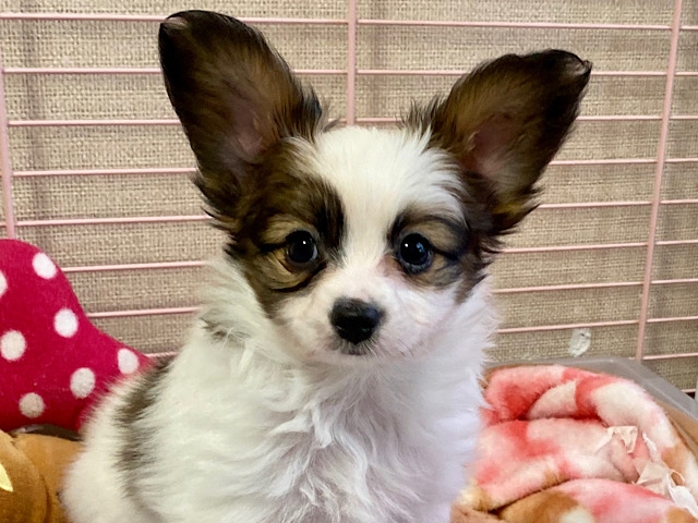 パピヨン ホワイト&セーブル ♂(男の子) 愛知県【 ブリーダーズ 】