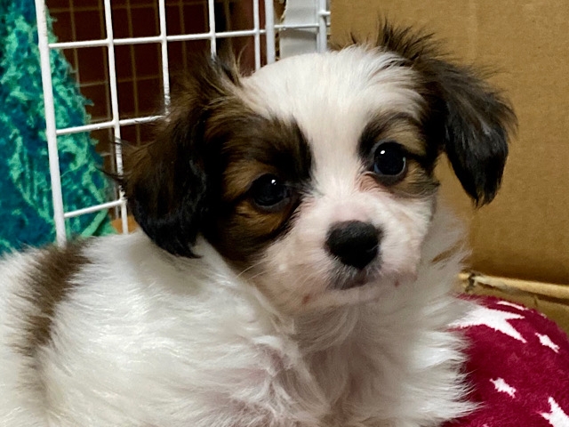 | コメント | 父犬はJKC.CHです。 母犬はCHではありませんが、良血統になります。 声をかけると首をかしげてくれます。 甘えん坊さんです。 明るく元気な男の子です。 成犬時の予想サイズは3kg~3.5kgくらいの平均的な大きさだと思います。 あくまでも、現時点での予想になります。 性格、体の大きさは生活環境で変わることがあります。 生体ですのでご理解いただきたく思います。 1回目の6種混合ワクチン接種済です。 健康診断も現時点での異常はありませんでした。 体重は1.1kgでした。 見学で気に入った場合はそのまま一緒に帰っていただけます。 見学は大歓迎です。 本犬、親、お身内ワンコさんとも触れ合っていただきたいと思います。 ワクチン接種済みでご見学の場で決めていただけて、 そのままお持ち帰りの対応もさせていただきます。 その場合は譲渡金額のご用意もお願いします。 遠方の方で、後日お返事でお迎えを決めていただい場合のみ、 空輸又はご自宅までお届けさせていただきます。 その場合は交通費(高速代)、ガソリン代、諸経費等のご負担をお願いいたします。 その他詳しくはお問い合わせメールの返信メールに当犬舎の譲渡規約を添付させていただきます。 よくお読みになっていただきたく思います。 |