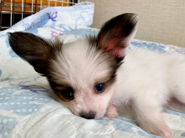 パピヨン ホワイト&セーブル ♂(男の子) 愛知県【 ブリーダーズ 】
