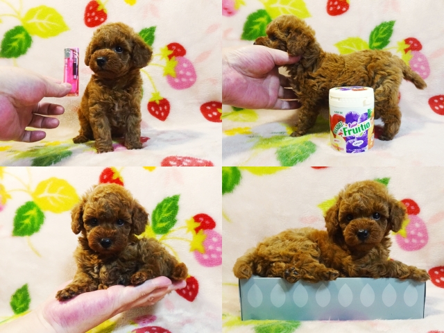 | コメント | ☆☆ティーカップサイズ予想☆☆懐っこい穏やかな優しい男の仔♪ スタイルも良くまん丸なお顔に短いお鼻円らな瞳でホント可愛い^^ 毛質最高!!しっかりした巻毛に毛量も充分で綺麗なレッドです^^ のんびりとした優しい性格で初めての方にでも飼い易い仔です☆ 小さくてもとっても元気ティーカップ兄弟と仲良く遊んでます♪ 生後55日の体重は約650g成犬予想体重2kgくらいだと思います!! 身体のバランスが良くしっかりした硬い胴で骨量多い丈夫な仔☆ 現状噛合せや骨格・関節形成など欠点の心配はありません!! 離乳も済み食欲旺盛でドライでカリカリ!!いつでもお引き渡しOK♪ 素敵なご家族様からのお問い合わせをお待ちしております^^ 【その他諸費用】 5種ワクチン接種費用:6千円【税・画像入証明書付・健康診断込】 ※お迎えの場合で【生体代金】+【ワクチン接種費用】のみです。 ●血統書登録団体:JKC(※3ヵ月以上要す事もあります) |
