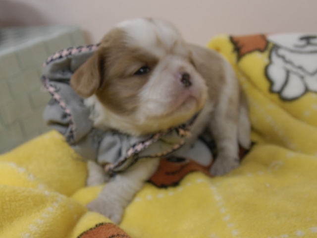 | コメント | お父さんはJKCチャンピオンの家斎君、お母さんはチャンピオン直子マーガレットちゃんから生まれたダンディーな男の子です。(灰リボン君) 健康状態は、問題有りません。 すくすく育っています。 特典として、平日割引(2万円)見学並びに契約をして頂いた方。 土日祝日割引(1万円)見学並びに契約をして頂いた方、ジャンケンで勝ったら値引きします。 |