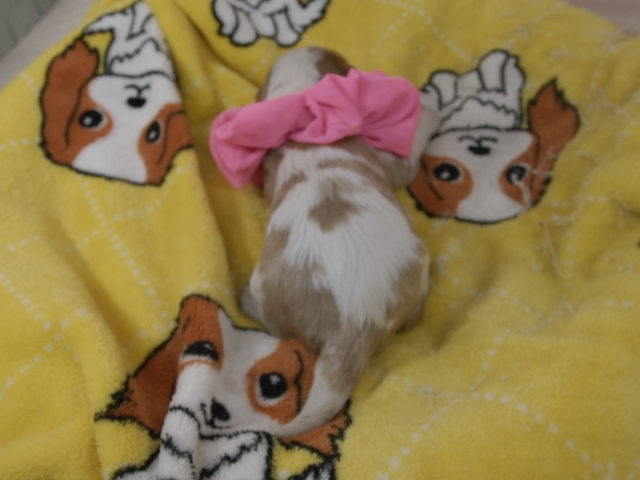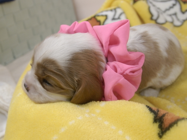 | コメント | お父さんはJKCチャンピオンの家斎君、お母さんはチャンピオン直子マーガレットちゃんから生まれたキュートな女の子です。(桃リボンちゃん) 健康状態は、問題有りません。 すくすく育っています。 特典として、平日割引(2万円)見学並びに契約をして頂いた方。 土日祝日割引(1万円)見学並びに契約をして頂いた方、ジャンケンで勝ったら値引きします。 |