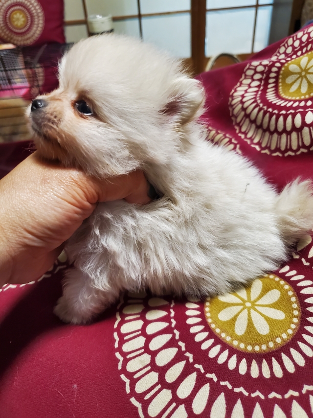初めてブリーダーさんからの子犬を譲って頂いたのですが 凄く丁寧な説明に加え返事も早かったので スムーズにポメちゃんをお迎えすることができました。 飛行機の時間上、こちらの都合で早い時間に犬舎にお伺いすることになったのですが 快く対応して頂き凄く助かりました。 ポメちゃんのお顔も可愛く、サイズも小振りで、性格も人懐っこく 我が家に到着初日から家族のアイドルです。 素晴らしい出会いとポメちゃんとのご縁に大変感謝しております。 この度は誠にありがとうございました。 定期的に成長報告のご連絡、致します(^-^)(沖縄県 女性)
