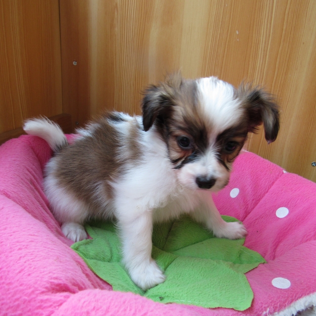 パピヨン ホワイト&ブラウン ♂(男の子) 埼玉県【 ブリーダーズ 】