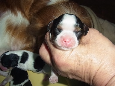 橋本さんはキャバリアのプロでとても冗談大好きで初めての電話の際から毎回楽しくお話させていただきました。待望のお迎えの際も先輩キャバリアちゃんたちが賑やかに迎えてくれて(キャバリア祭り笑)、子犬のパパママにも会わせていただき感激しました。ちなみに橋本さんちのキャバリアちゃんたちはみんな美男美女でかわいい子ばっかりです。橋本さんの優しくキャバ愛溢れるお人柄も決め手にもなりました。子犬は夜鳴きもせず当日から元気いっぱいで毎日おてんば発揮してます笑、これからもずっと大切に育てていきます!また子犬が落ち着きましたら橋本さんとキャバちゃんたちに会いに素敵な尾道に里帰りさせてもらいたいなぁと企んでおります笑、本当にありがとうございました! (京都府 女性)