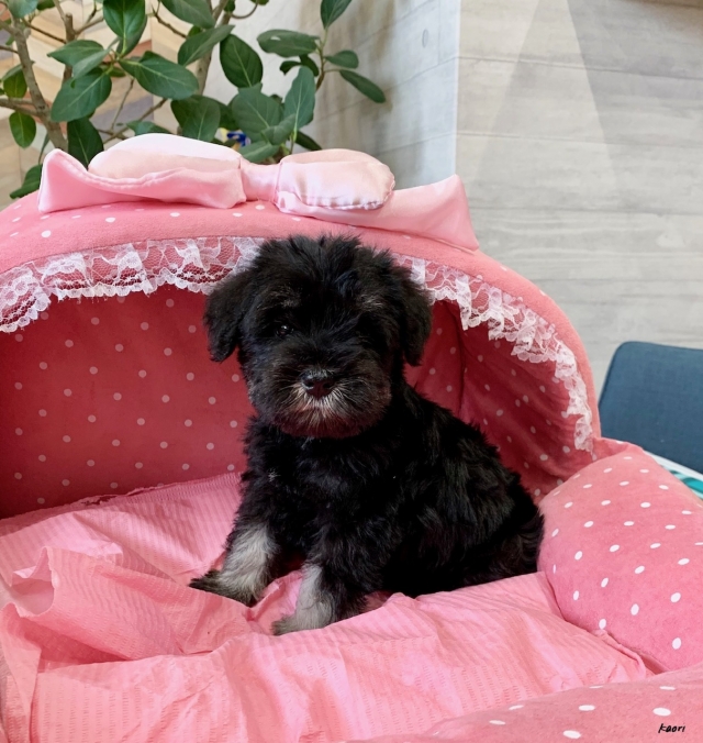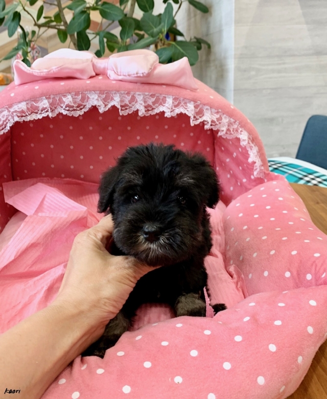 シュナウザーを主力にされているブリーダーさんだと認識しており、ボスちゃんはどうかなあと正直不安でしたがとても可愛く健康的なボスちゃんをいただきました。 掲載されていた写真より実物は想像以上に可愛くて即決し見学させていただいたその日に連れて帰りました。連絡をして、翌日行きますぅって勝手な申し出にも関わらず敏速かつ親切に対応して頂き大満足です。契約に対しても一つ一つ丁寧に説明してくださり、わかりやすかったです。この度は可愛いボスちゃんとのご縁をいただき、本当に有り難うございました。 (大阪府 女性)