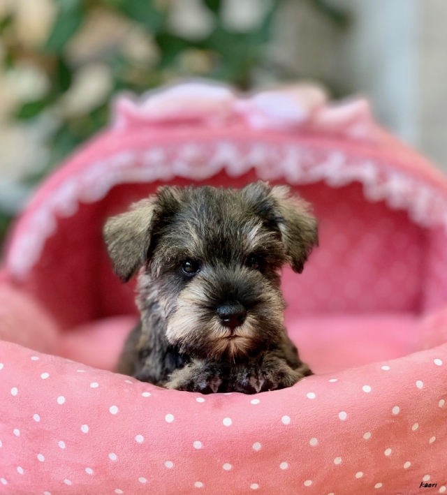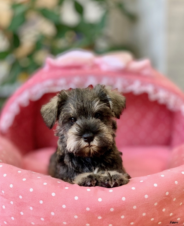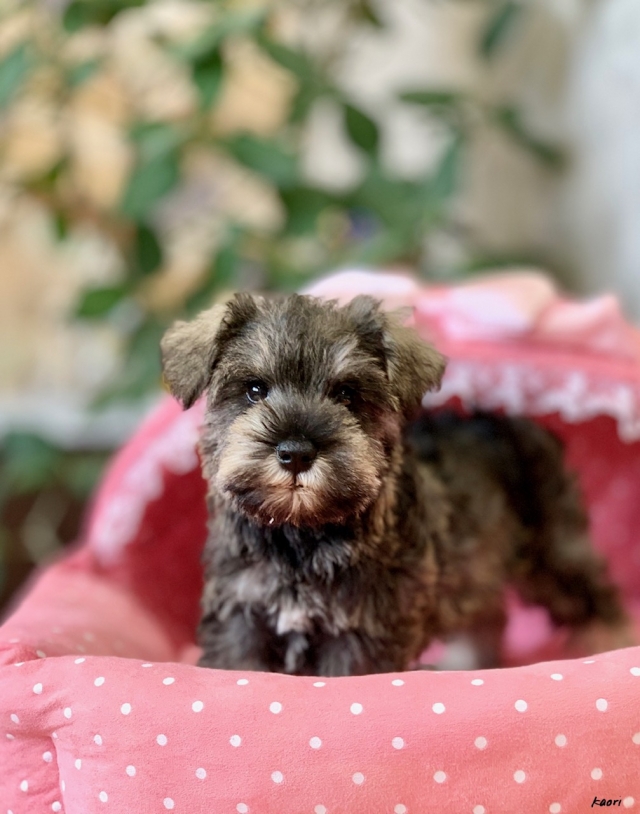 シュナウザーを主力にされているブリーダーさんだと認識しており、ボスちゃんはどうかなあと正直不安でしたがとても可愛く健康的なボスちゃんをいただきました。 掲載されていた写真より実物は想像以上に可愛くて即決し見学させていただいたその日に連れて帰りました。連絡をして、翌日行きますぅって勝手な申し出にも関わらず敏速かつ親切に対応して頂き大満足です。契約に対しても一つ一つ丁寧に説明してくださり、わかりやすかったです。この度は可愛いボスちゃんとのご縁をいただき、本当に有り難うございました。 (大阪府 女性)