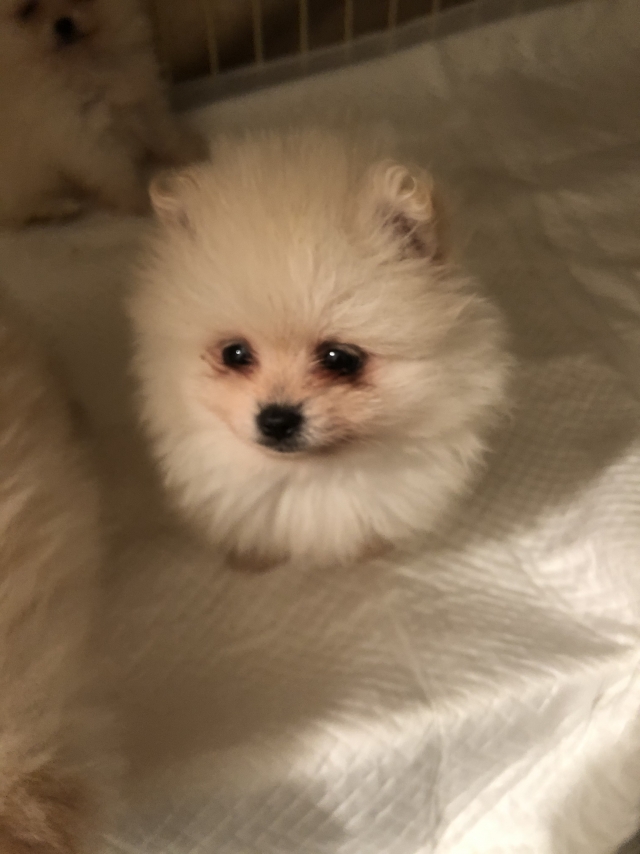 | コメント | 遊んで、食べて、寝て、大きくなってきてます!! ママにぺったりくっついて離れません。 クリーム色のふわふわポメちゃんです。 |