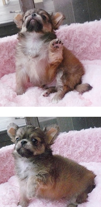 | コメント | パパ:ばつぐんくん(いっぴんの息子) ママ:ミツハニー ●JKC血統書付き(申請中) ●1回目・6種混合ワクチン接種済み(別途5千円・証明書有り) ●噛み合わせ・正常範囲 ワクチン接種時、同時に獣医による簡単な触診・検便・心音チェック受診済み。 テディベア風味のモコモコもふもふちゃん。 凶暴性は全く有りませんから小さいお子様がいるご家庭でも安心の性格の良い子です。 「独り寝」の練習と「お留守番」の練習も開始しており、そちらも上手に出来るようになっています。 性格もなつっこい子ですので飼育し易いと思います。 見学時、お渡し可能です!(6月4日から) 【ご注意点】※お互いに気持ちの良いお取引をしたいので、わんこを受け取った後に絶対に文句を言われる事の無い様にご質問下さい。 納得なさってから飼う意志を決断して下さいます様に、お願い申し上げます。 神経質な方はご遠慮下さい。 「新たな画像」・「動画などのご請求」・「値引き交渉」お断りします。 携帯からメールでのお問い合わせにはパソコンメール受信可能にして下さいね。 新型コロナの影響により、しばらくの間、空輸対応は出来ませんのでご理解下さい。 |