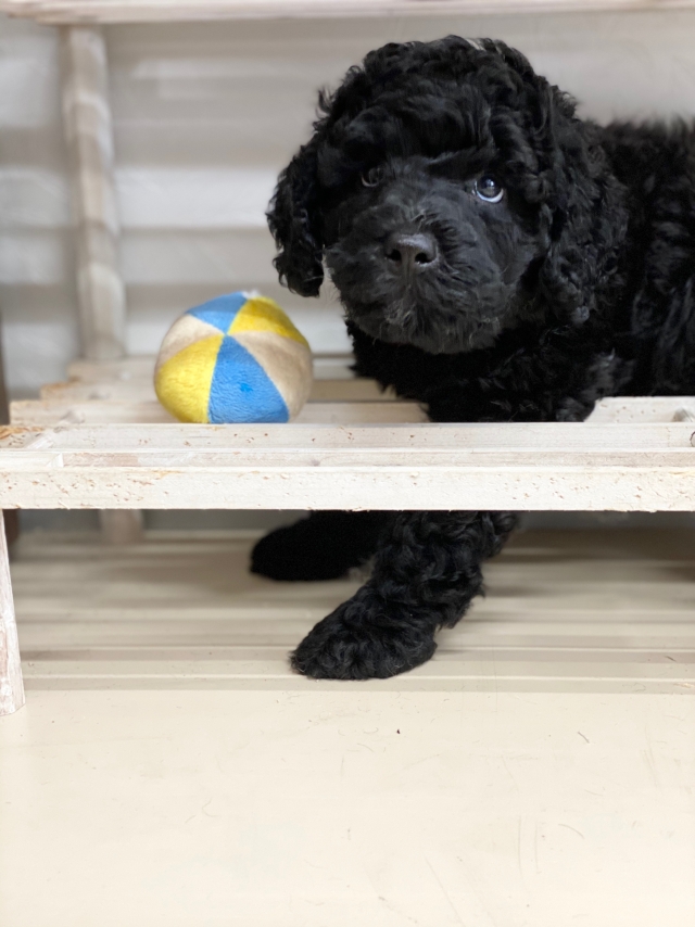 | コメント | 母 ポーチュギーズウォータードッグmix 父 ポーチュギーズウォータードッグ 昨年来日したポーチュギーズウォータードッグのボチャとポーチュギーズウォータードッグmixのコチュの赤ちゃんが7頭産まれました。 mixですが、ほとんどウォータードッグになります。 成犬時20キロ前後に成長すると思います。 毛が抜け落ちにくく毎月のサロンでのトリミングが必要です。 販売譲渡にあたり条件がありますのでお問い合わせ時にいくつかご質問させて頂ます。 |