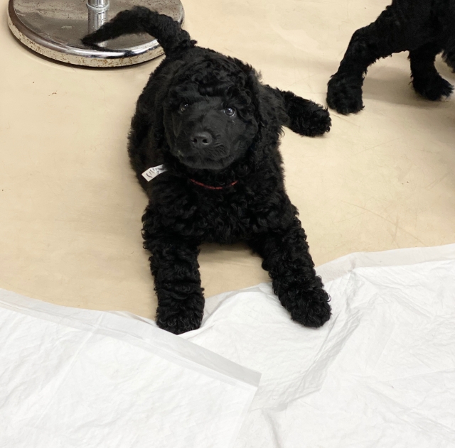 | コメント | 母 ポーチュギーズウォータードッグmix 父 ポーチュギーズウォータードッグ 昨年来日したポーチュギーズウォータードッグのボチャとポーチュギーズウォータードッグmixのコチュの赤ちゃんが7頭産まれました。 mixですが、ほとんどウォータードッグになります。 成犬時20キロ前後に成長すると思います。 毛が抜け落ちにくく毎月のサロンでのトリミングが必要です。 販売譲渡にあたり条件がありますのでお問い合わせ時にいくつかご質問させて頂ます。 |