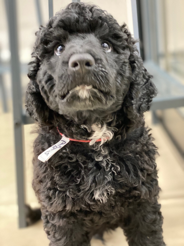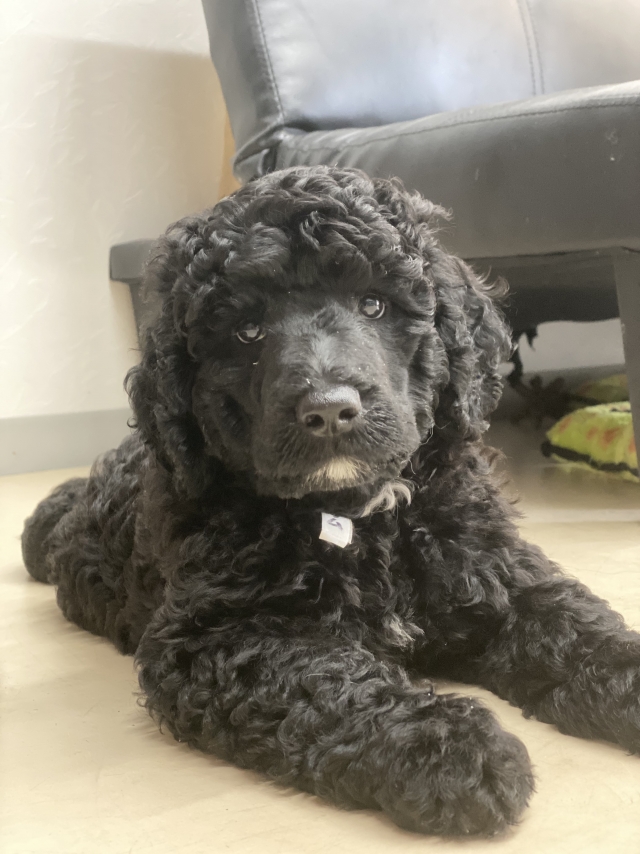 | コメント | 母 ポーチュギーズウォータードッグmix 父 ポーチュギーズウォータードッグ 昨年来日したポーチュギーズウォータードッグのボチャとポーチュギーズウォータードッグmixのコチュの赤ちゃんが7頭産まれました。 mixですが、ほとんどウォータードッグになります。 成犬時20キロ前後に成長すると思います。 毛が抜け落ちにくく毎月のサロンでのトリミングが必要です。 販売譲渡にあたり条件がありますのでお問い合わせ時にいくつかご質問させて頂ます。 |