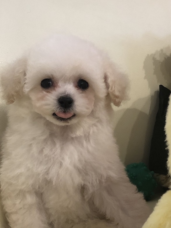 現在、親子4匹のトイプーを飼っていますが、ホワイトのトイプーを新しく家族に迎え入れたく探しておりましたが地元のペットショップでは、なかなかピンとくる子に巡り合えず、ネットを観覧していました所、ブリーダーサイトでピンとくる子を見つけました。ネット購入には不安がありましたが、岩本ブリーダーさんの迅速な対応やブログなどを拝見させて頂き信頼できる方だと思い購入に踏み切りました。住まいが北海道なので一度も会いに行かなままお迎えを楽しみに待っていました。お迎えの日までの間、画像や動画を拝見させて頂いたり、付けた名前で呼んでくれたりドックフードなどもこちらの意向に合わせてくれたりと、とても感謝しております。子犬ちゃんも、健康・賢い・お顔が可愛いとてもいい子です。なかなかこんな子には巡り合えないと家族皆喜んでいます。購入後もトイレの事とか気にかけて頂きメールを下さいました。とても良いご縁が結べたと思っております。(北海道 女性)