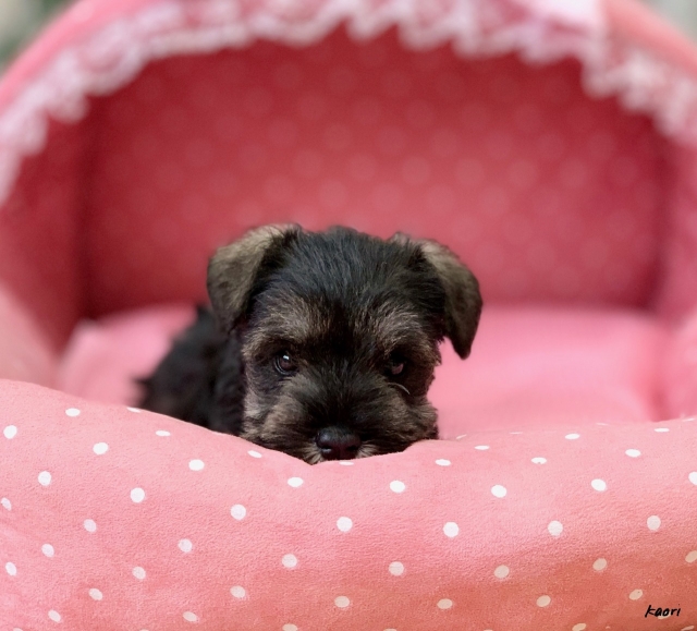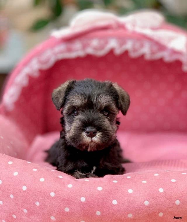 シュナウザーを主力にされているブリーダーさんだと認識しており、ボスちゃんはどうかなあと正直不安でしたがとても可愛く健康的なボスちゃんをいただきました。 掲載されていた写真より実物は想像以上に可愛くて即決し見学させていただいたその日に連れて帰りました。連絡をして、翌日行きますぅって勝手な申し出にも関わらず敏速かつ親切に対応して頂き大満足です。契約に対しても一つ一つ丁寧に説明してくださり、わかりやすかったです。この度は可愛いボスちゃんとのご縁をいただき、本当に有り難うございました。 (大阪府 女性)