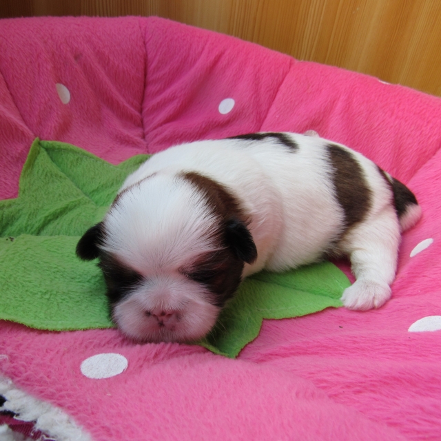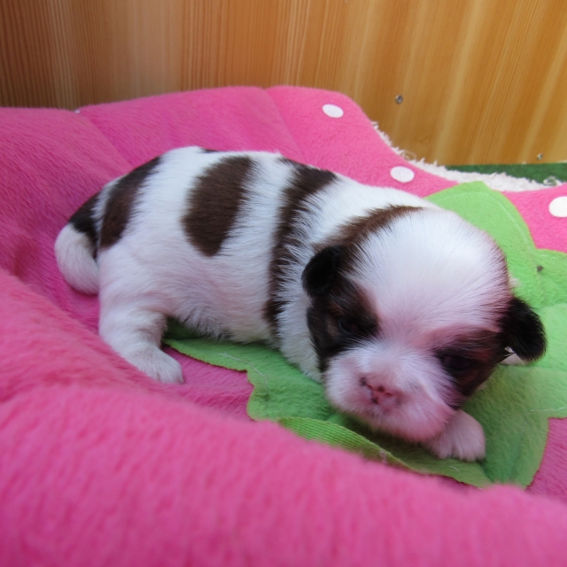 | コメント | 愛嬌があって可愛いシーズーの赤ちゃんです 3匹兄弟で みんなコロコロの健康優良児です お母さんも性格は穏やかで とってもいい子です これからどんどん可愛くなりますので 写真の入れ替えも楽しみにして下さい。 見学の受付もしています どんな小さな事でも遠慮なくご相談下さい。 生後50日 過ぎたら連れて帰れます。 |