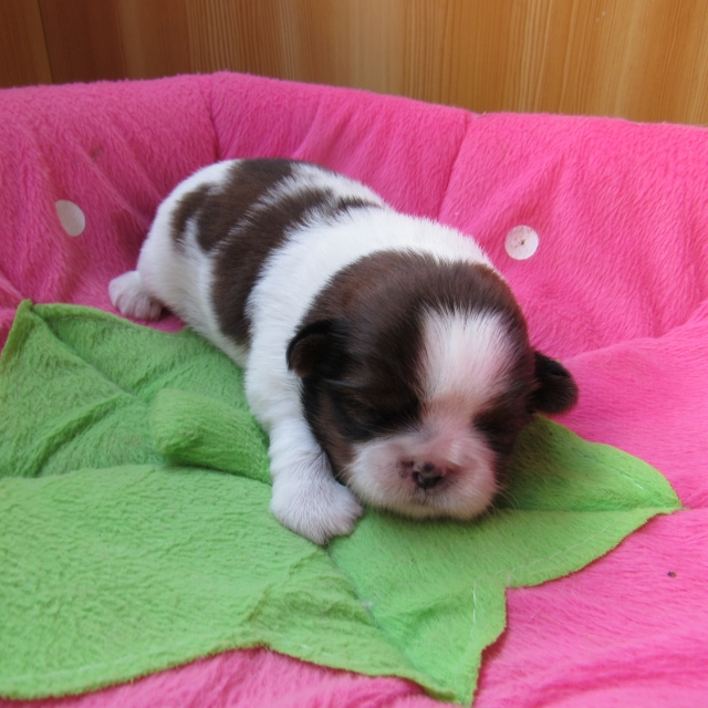 | コメント | 愛嬌があって可愛いシーズーの赤ちゃんです 3匹兄弟で みんなコロコロの健康優良児です お母さんも性格は穏やかで とってもいい子です これからどんどん可愛くなりますので 写真の入れ替えも楽しみにして下さい。 見学の受付もしています どんな小さな事でも遠慮なくご相談下さい。 生後50日 過ぎたら連れて帰れます。 |