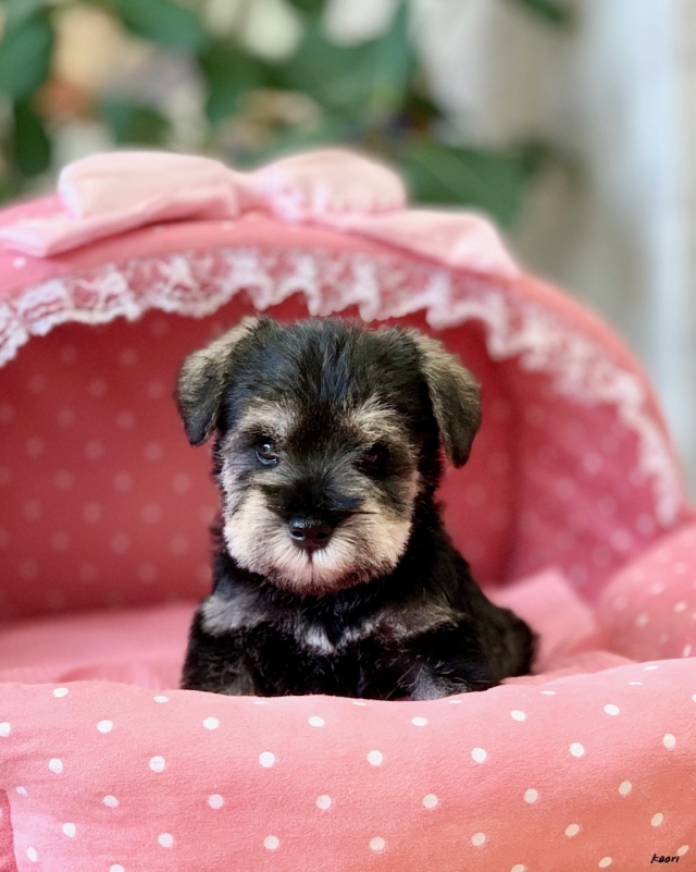シュナウザーを主力にされているブリーダーさんだと認識しており、ボスちゃんはどうかなあと正直不安でしたがとても可愛く健康的なボスちゃんをいただきました。 掲載されていた写真より実物は想像以上に可愛くて即決し見学させていただいたその日に連れて帰りました。連絡をして、翌日行きますぅって勝手な申し出にも関わらず敏速かつ親切に対応して頂き大満足です。契約に対しても一つ一つ丁寧に説明してくださり、わかりやすかったです。この度は可愛いボスちゃんとのご縁をいただき、本当に有り難うございました。 (大阪府 女性)