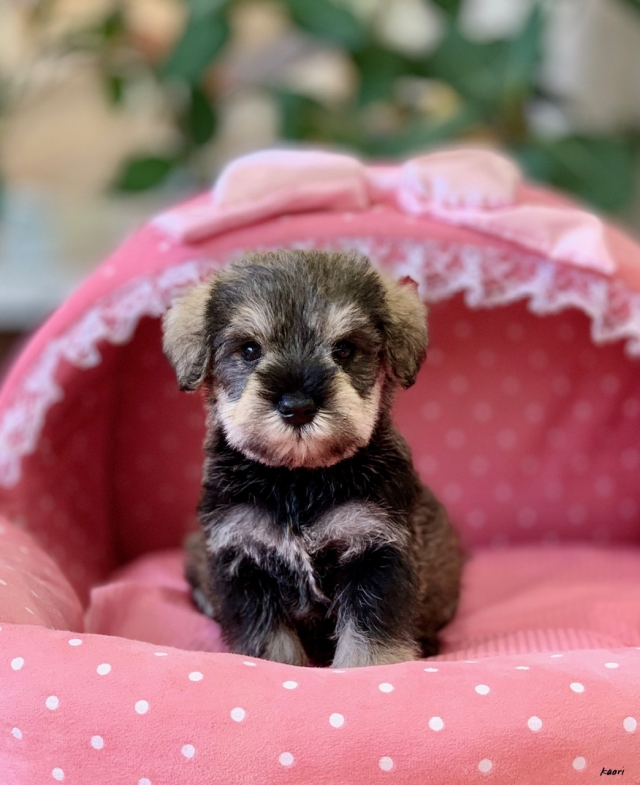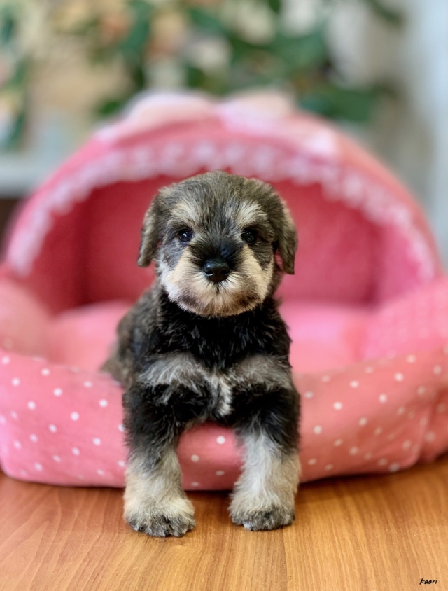 シュナウザーを主力にされているブリーダーさんだと認識しており、ボスちゃんはどうかなあと正直不安でしたがとても可愛く健康的なボスちゃんをいただきました。 掲載されていた写真より実物は想像以上に可愛くて即決し見学させていただいたその日に連れて帰りました。連絡をして、翌日行きますぅって勝手な申し出にも関わらず敏速かつ親切に対応して頂き大満足です。契約に対しても一つ一つ丁寧に説明してくださり、わかりやすかったです。この度は可愛いボスちゃんとのご縁をいただき、本当に有り難うございました。 (大阪府 女性)