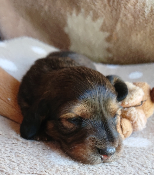 ミニチュア・ダックスフンド(ロング) レッド、 ♂(男の子) 鹿児島県【 ブリーダーズ 】
