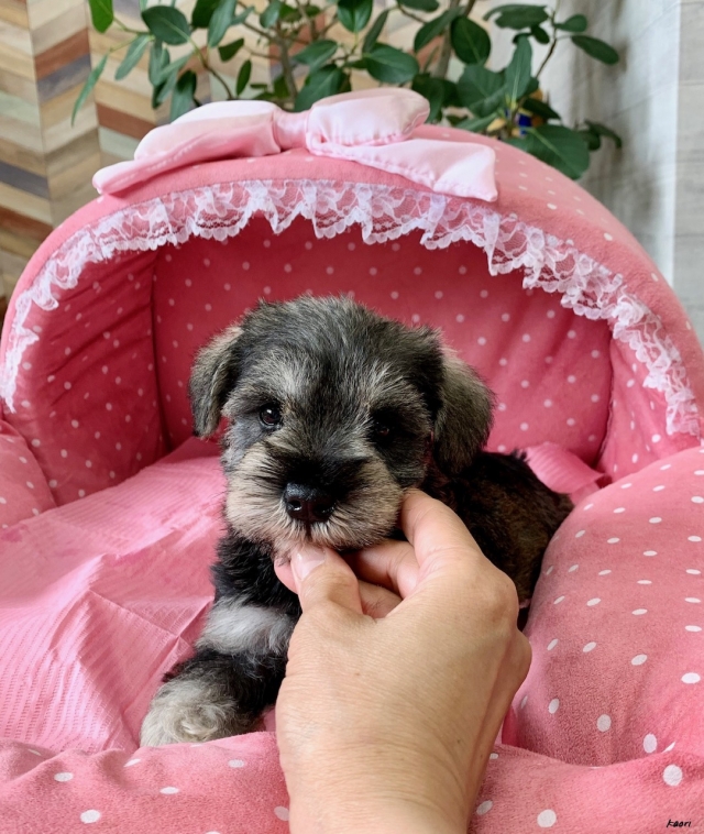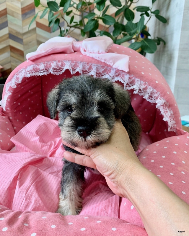 シュナウザーを主力にされているブリーダーさんだと認識しており、ボスちゃんはどうかなあと正直不安でしたがとても可愛く健康的なボスちゃんをいただきました。 掲載されていた写真より実物は想像以上に可愛くて即決し見学させていただいたその日に連れて帰りました。連絡をして、翌日行きますぅって勝手な申し出にも関わらず敏速かつ親切に対応して頂き大満足です。契約に対しても一つ一つ丁寧に説明してくださり、わかりやすかったです。この度は可愛いボスちゃんとのご縁をいただき、本当に有り難うございました。 (大阪府 女性)