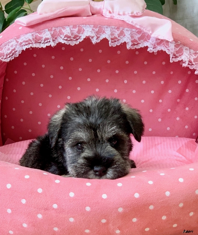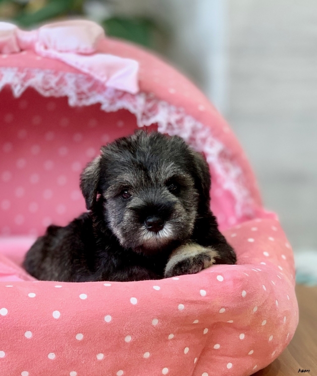 シュナウザーを主力にされているブリーダーさんだと認識しており、ボスちゃんはどうかなあと正直不安でしたがとても可愛く健康的なボスちゃんをいただきました。 掲載されていた写真より実物は想像以上に可愛くて即決し見学させていただいたその日に連れて帰りました。連絡をして、翌日行きますぅって勝手な申し出にも関わらず敏速かつ親切に対応して頂き大満足です。契約に対しても一つ一つ丁寧に説明してくださり、わかりやすかったです。この度は可愛いボスちゃんとのご縁をいただき、本当に有り難うございました。 (大阪府 女性)