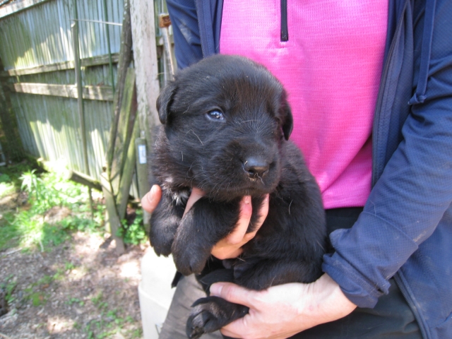 | コメント | 父親は温和な性格のゴールデン。 母親は何度も訓練競技会で上位入賞している優秀犬。 この前にもこの組み合わせの犬がTV出演して好評でした。 今回は、ブラックの子犬は2匹のみです。 訓練を楽しみたい方にはとても楽しい犬です。 |