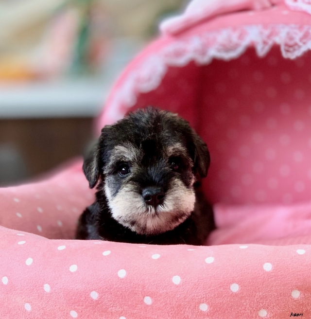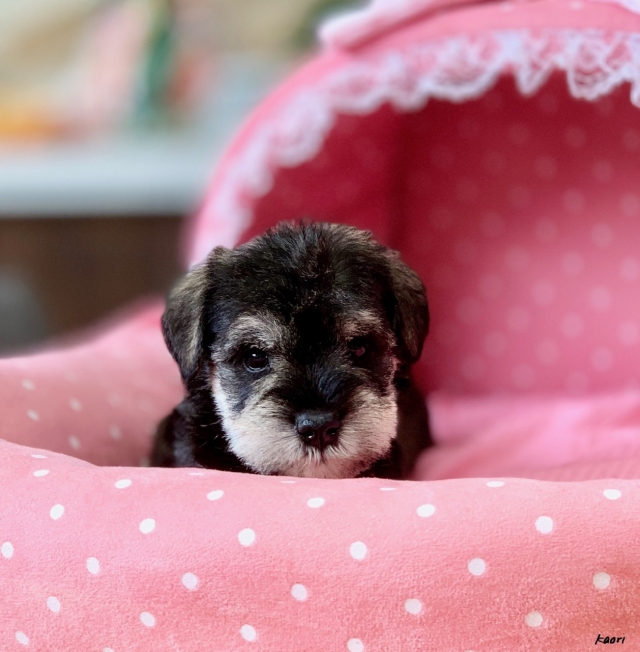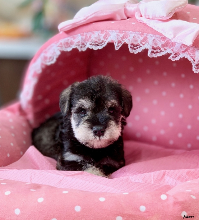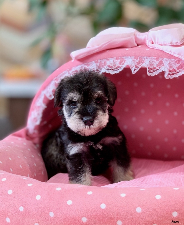 シュナウザーを主力にされているブリーダーさんだと認識しており、ボスちゃんはどうかなあと正直不安でしたがとても可愛く健康的なボスちゃんをいただきました。 掲載されていた写真より実物は想像以上に可愛くて即決し見学させていただいたその日に連れて帰りました。連絡をして、翌日行きますぅって勝手な申し出にも関わらず敏速かつ親切に対応して頂き大満足です。契約に対しても一つ一つ丁寧に説明してくださり、わかりやすかったです。この度は可愛いボスちゃんとのご縁をいただき、本当に有り難うございました。 (大阪府 女性)