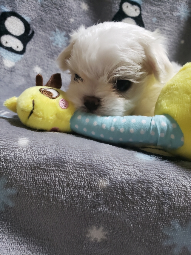 マルチーズの子犬を探しており今回こちらでご縁があり我が家に天使がやって来ました。オス犬を飼うのが初めてだったのと、健康面や性格の安定感は勿論、お顔に拘っていたのであちこち探していて、その中からこちらに決めさせて頂きました。同じ近畿圏内と言うこともあったのですが何より本当の情報を丁寧に説明して頂いた事です。見学も日程など柔軟に対応して頂いた事や実際にお会いした時も、勿論ボランティアさんではない営利を目的とされておられますが、それ以外に動物を扱っておられる責任と愛情が感じられ、非常に信頼と好感がもてました。実際購入手続きが完了してから子犬をお迎えに行く時、更にこちらに子犬がやってきてからも、気を遣って頂いていますので、売って終わり〜などとは無縁なブリーダーさんです。 まだまだちっちゃいので、気は抜けませんが家族として大切に育てていきます。 色々困った事などが発生しても安心して何でもお聞き出来るブリーダーさんでした。 有難うございます。(大阪府 女性)