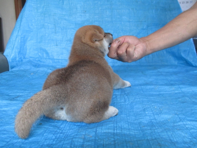 初めて見学で伺った際に、並んで日向ぼっこをしている親犬たちを見て、その時点で高橋さんなら安心だと感じました。事前に希望していたこともあり、母犬と父犬を先に見せていただきましたが、母犬のあまりの人懐こい性格にやられてしまい、実は子犬を見る前に是非譲っていただこうという気持ちになっておりました。 見学の時、譲渡の時といろいろな話をさせてもらい、小さな気付きなども折り込んで教えてもらえるのでやはり柴犬ならこうした専門の方が信頼出来ます。 子犬が我が家に来て二週間が経ち、きょうだいのなかでも一回り小さかったこともあり、やはり成長もやや遅い感じではありますが、母性を刺激された先住犬が頑張って見守ってくれており、予想外ではあるものの家族全員一安心です。 この度は本当にありがとうございました。この子が幸せになれるよう精一杯向き合っていきます。 なお、今後検討されている方への注意事項をひとつだけ書いておきます。問い合わせや見学希望に対しての高橋さんからの返信は電話です。メールでの返信ではありませんので気を付けてください。(宮城県 男性)