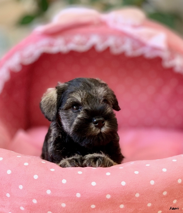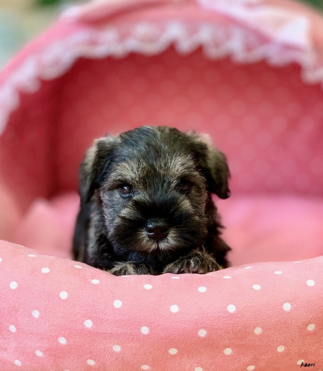 シュナウザーを主力にされているブリーダーさんだと認識しており、ボスちゃんはどうかなあと正直不安でしたがとても可愛く健康的なボスちゃんをいただきました。 掲載されていた写真より実物は想像以上に可愛くて即決し見学させていただいたその日に連れて帰りました。連絡をして、翌日行きますぅって勝手な申し出にも関わらず敏速かつ親切に対応して頂き大満足です。契約に対しても一つ一つ丁寧に説明してくださり、わかりやすかったです。この度は可愛いボスちゃんとのご縁をいただき、本当に有り難うございました。 (大阪府 女性)