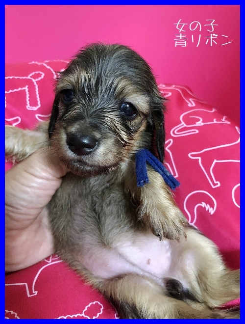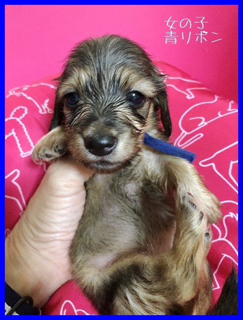 亡くなった愛犬達と同じ、 ワイヤーダックスの子犬を探していましたが、珍しい犬種という事もあり、 なかなか出会えませんでした。 諦めかけた頃、こちらのサイトで可愛い子犬を見つけ、思いきってメールをさせて頂きました。 遠藤ブリーダー様の迅速丁寧な対応で、 お陰様で無事に子犬を迎える事が出来ました。 本当にありがとうございました。 ブリーダーズ様にも感謝致します。 (北海道 女性)