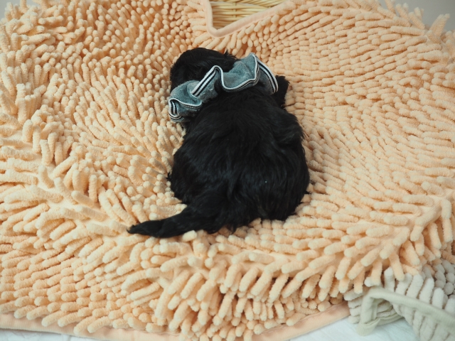 この度はとっても元気な子をありがとうございました。 見学の際は駅まで迎えにきていただき、説明もとても丁寧で安心しました。 空輸で送っていただき、ありがとうございました。 迎えてから一週間が経ち、家にも慣れて、へそ天で寝ています。 トイレトレーニングも、来た時から8割できていて、今ではほとんど失敗しなくなりました。 可愛く元気で、毎日元気に飛び跳ねています。(奈良県 女性)
