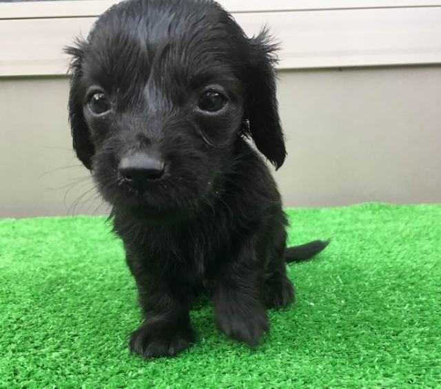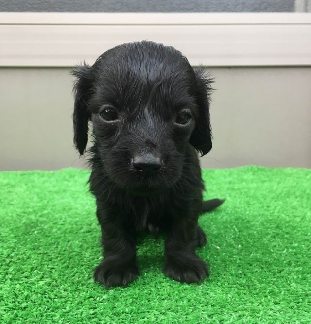 カニンヘン・ダックスフンド(ロング) ブラックソリッド ♂(男の子) 兵庫県【 ブリーダーズ 】