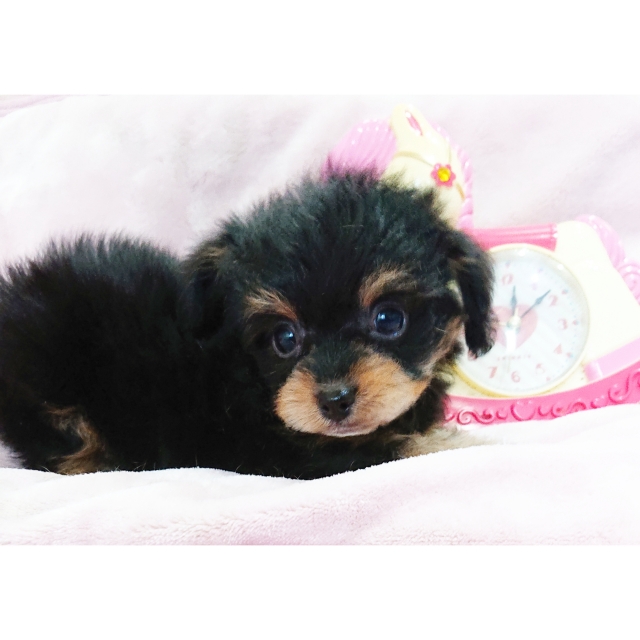 | コメント | 父・・ヨーキー 母・・プードル まん丸なお目目が可愛い男の子です タンの色も柄もとても綺麗でお顔立ちが はっきり見えます 毛質はプードルとヨーキーの半分づつ受け継いでいる感じです 緩くカールしている所も有りますので抜け毛もほとんど 気にならないと思います胸の所にほんの少ししろいけが 有ります 大人になって3kg以下の可愛いサイズの 仕上がり予想です 健康診断、1回目のワクチン済みです 生涯家族の一員として可愛がって下さる方を希望致します |