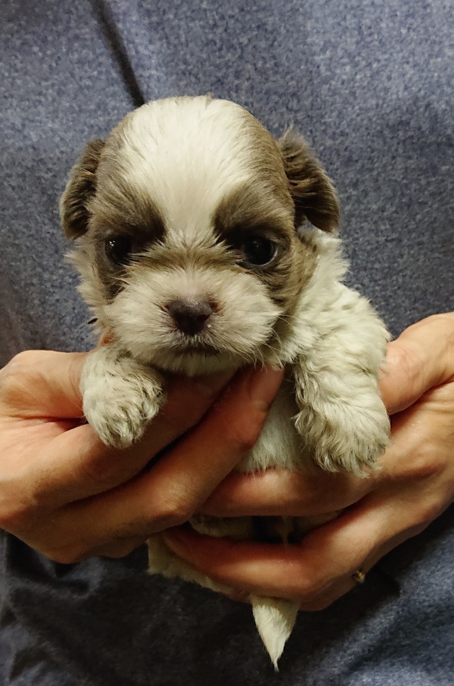シーズー ホワイト&グレー&ゴールド ♂(男の子) 茨城県【 ブリーダーズ 】