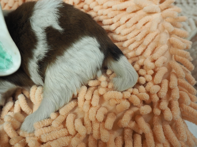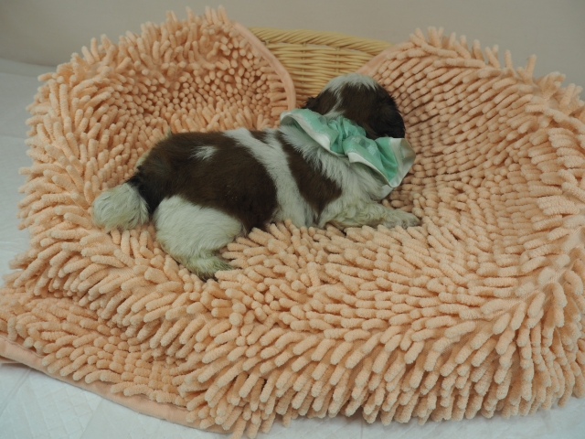 この度はとっても元気な子をありがとうございました。 見学の際は駅まで迎えにきていただき、説明もとても丁寧で安心しました。 空輸で送っていただき、ありがとうございました。 迎えてから一週間が経ち、家にも慣れて、へそ天で寝ています。 トイレトレーニングも、来た時から8割できていて、今ではほとんど失敗しなくなりました。 可愛く元気で、毎日元気に飛び跳ねています。(奈良県 女性)