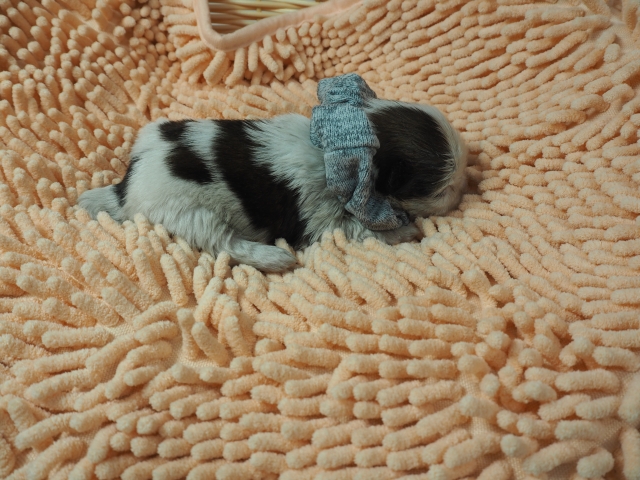 この度はとっても元気な子をありがとうございました。 見学の際は駅まで迎えにきていただき、説明もとても丁寧で安心しました。 空輸で送っていただき、ありがとうございました。 迎えてから一週間が経ち、家にも慣れて、へそ天で寝ています。 トイレトレーニングも、来た時から8割できていて、今ではほとんど失敗しなくなりました。 可愛く元気で、毎日元気に飛び跳ねています。(奈良県 女性)