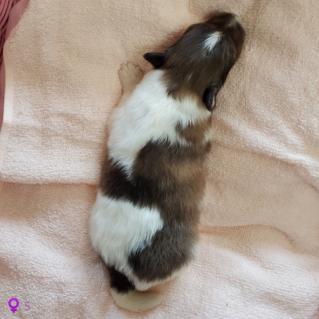 | コメント | 両親ともに優良血統の女の子です。 父犬: JKC、JCCチャンピオン(両親とも輸入犬、アメリカチャンピオン) 母犬: JCCグランドチャンピオン 白が多く、スタンダードにおいて、欠点になりますが、 健康上、問題はありません。 室内飼育希望です。 ご家族の一員として、生涯、可愛がって下さる方を希望します。 見学は、生後3週間以降になります。 お問い合わせ、お待ちしております。 |