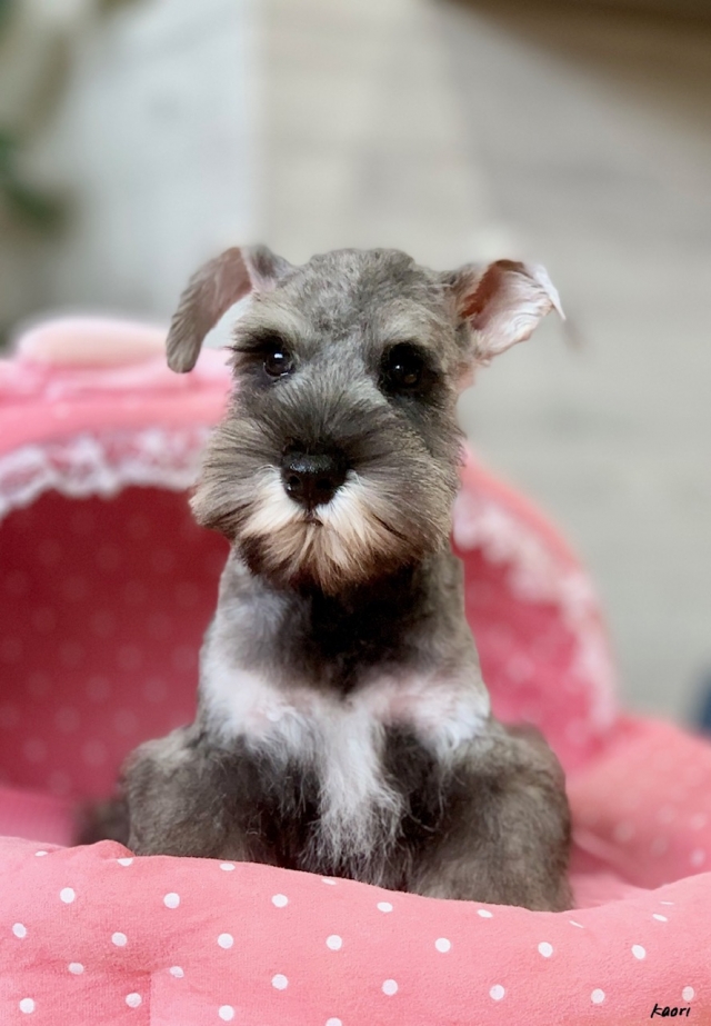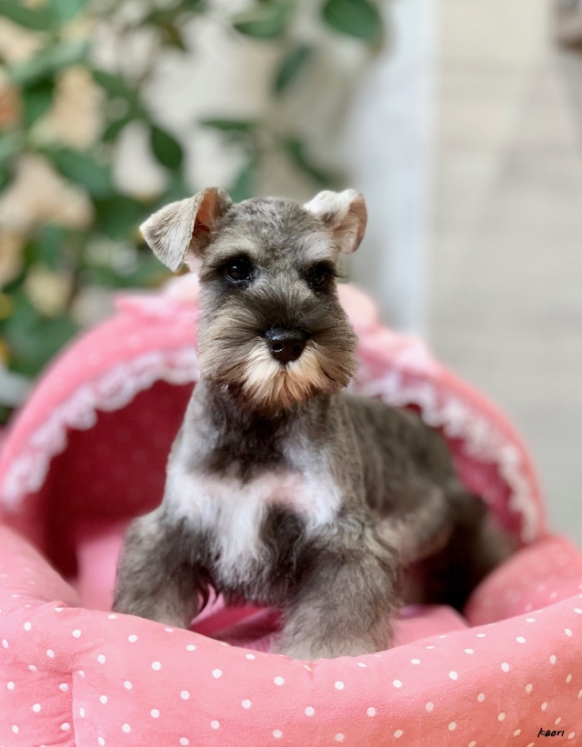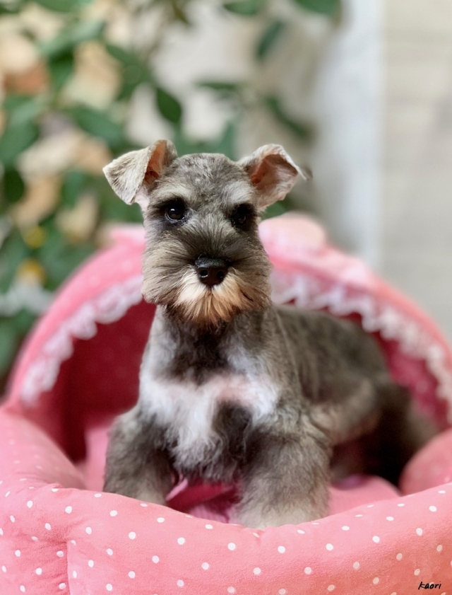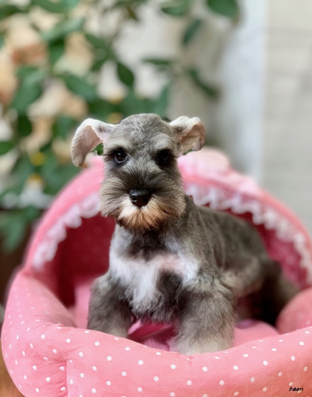 シュナウザーを主力にされているブリーダーさんだと認識しており、ボスちゃんはどうかなあと正直不安でしたがとても可愛く健康的なボスちゃんをいただきました。 掲載されていた写真より実物は想像以上に可愛くて即決し見学させていただいたその日に連れて帰りました。連絡をして、翌日行きますぅって勝手な申し出にも関わらず敏速かつ親切に対応して頂き大満足です。契約に対しても一つ一つ丁寧に説明してくださり、わかりやすかったです。この度は可愛いボスちゃんとのご縁をいただき、本当に有り難うございました。 (大阪府 女性)