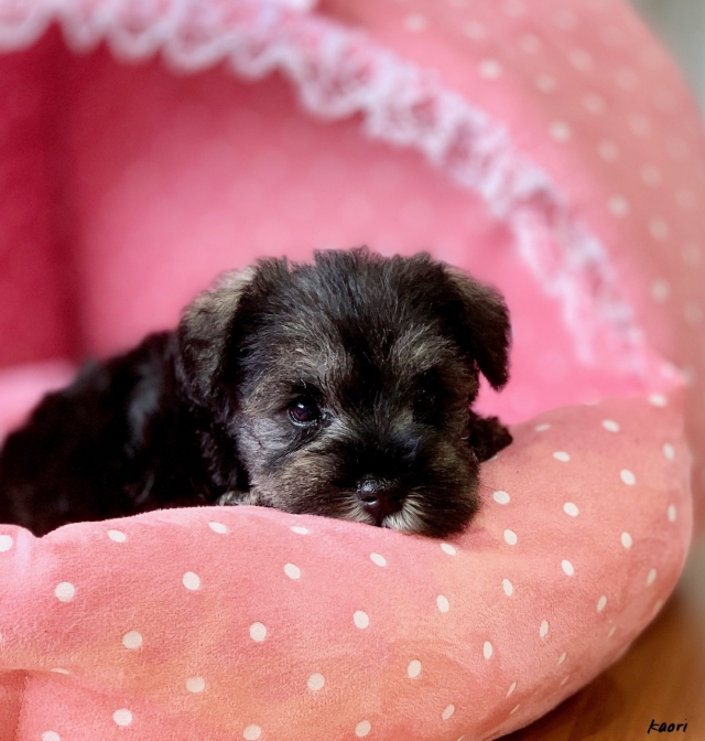 シュナウザーを主力にされているブリーダーさんだと認識しており、ボスちゃんはどうかなあと正直不安でしたがとても可愛く健康的なボスちゃんをいただきました。 掲載されていた写真より実物は想像以上に可愛くて即決し見学させていただいたその日に連れて帰りました。連絡をして、翌日行きますぅって勝手な申し出にも関わらず敏速かつ親切に対応して頂き大満足です。契約に対しても一つ一つ丁寧に説明してくださり、わかりやすかったです。この度は可愛いボスちゃんとのご縁をいただき、本当に有り難うございました。 (大阪府 女性)