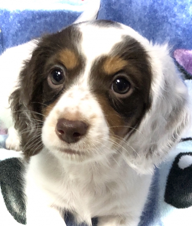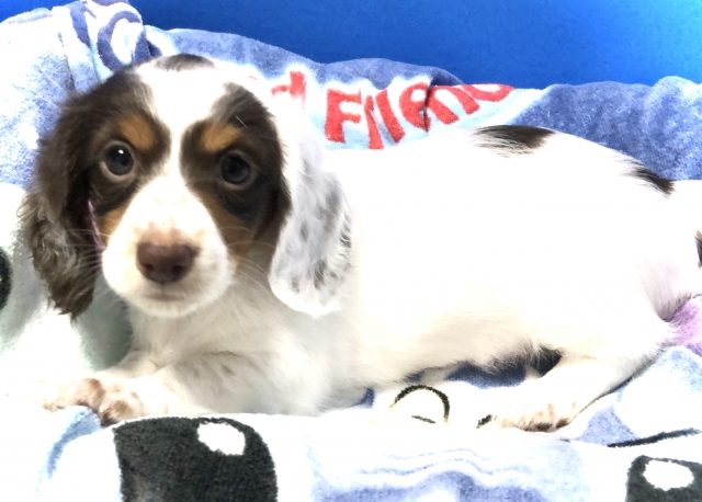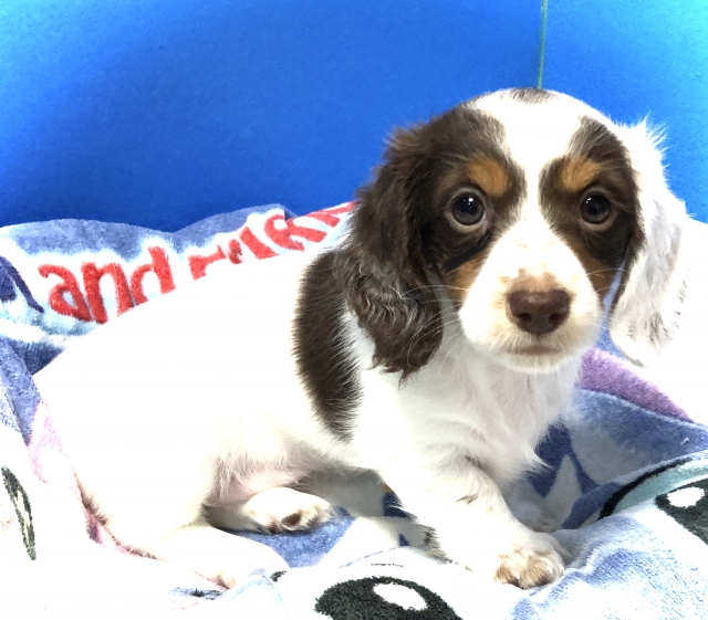 ミニチュア・ダックスフンド(ロング) チョコタン パイボールド ♀(女の子) 神奈川県【 ブリーダーズ 】