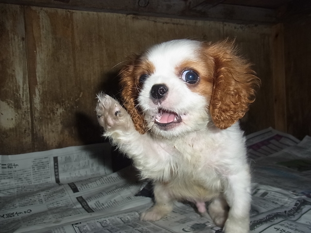 | コメント | 父親 ブレンハイム 母親 ブレンハイム 感染症にかかりましたが完治し、今は元気いっぱいです。 キャバリア大好き、もしくは関心をお持ちの方のみ、気軽に気さくに何でもお問い合わせください。 キャバ達と直に遊べます。 遠方の方もご相談ください。 神経質、心配性の方はご遠慮願います。 |