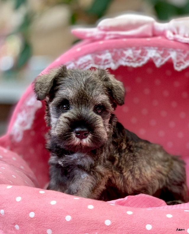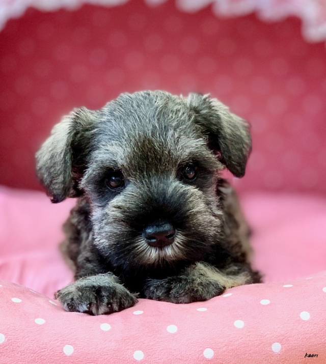 シュナウザーを主力にされているブリーダーさんだと認識しており、ボスちゃんはどうかなあと正直不安でしたがとても可愛く健康的なボスちゃんをいただきました。 掲載されていた写真より実物は想像以上に可愛くて即決し見学させていただいたその日に連れて帰りました。連絡をして、翌日行きますぅって勝手な申し出にも関わらず敏速かつ親切に対応して頂き大満足です。契約に対しても一つ一つ丁寧に説明してくださり、わかりやすかったです。この度は可愛いボスちゃんとのご縁をいただき、本当に有り難うございました。 (大阪府 女性)