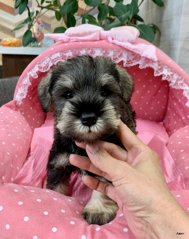 シュナウザーを主力にされているブリーダーさんだと認識しており、ボスちゃんはどうかなあと正直不安でしたがとても可愛く健康的なボスちゃんをいただきました。 掲載されていた写真より実物は想像以上に可愛くて即決し見学させていただいたその日に連れて帰りました。連絡をして、翌日行きますぅって勝手な申し出にも関わらず敏速かつ親切に対応して頂き大満足です。契約に対しても一つ一つ丁寧に説明してくださり、わかりやすかったです。この度は可愛いボスちゃんとのご縁をいただき、本当に有り難うございました。 (大阪府 女性)