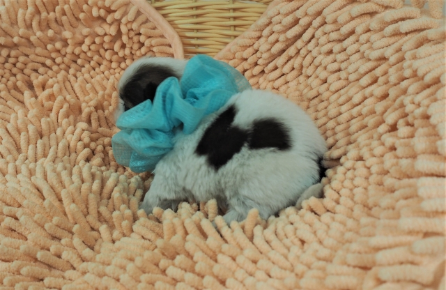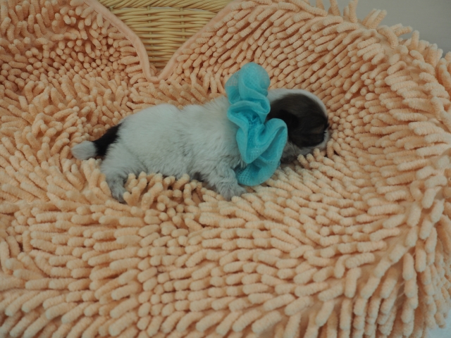 | コメント | お父さんはサム君、お母さんはビッキーちゃんから生まれたダンディーな男の子です。(青リボン) 健康状態は、問題有りません。 尾まがりあり。 すくすく育っています。 |