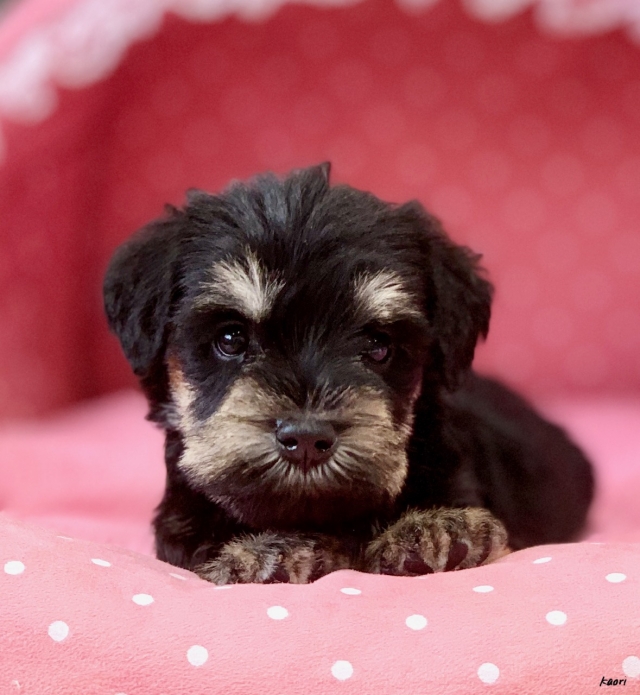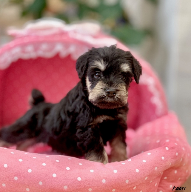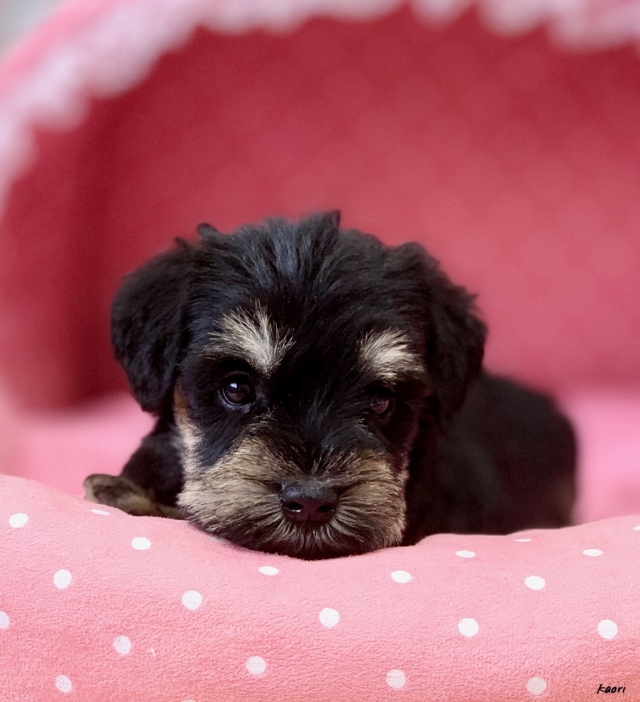 シュナウザーを主力にされているブリーダーさんだと認識しており、ボスちゃんはどうかなあと正直不安でしたがとても可愛く健康的なボスちゃんをいただきました。 掲載されていた写真より実物は想像以上に可愛くて即決し見学させていただいたその日に連れて帰りました。連絡をして、翌日行きますぅって勝手な申し出にも関わらず敏速かつ親切に対応して頂き大満足です。契約に対しても一つ一つ丁寧に説明してくださり、わかりやすかったです。この度は可愛いボスちゃんとのご縁をいただき、本当に有り難うございました。 (大阪府 女性)