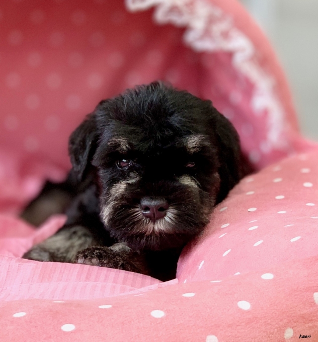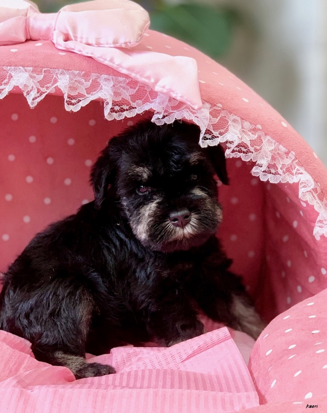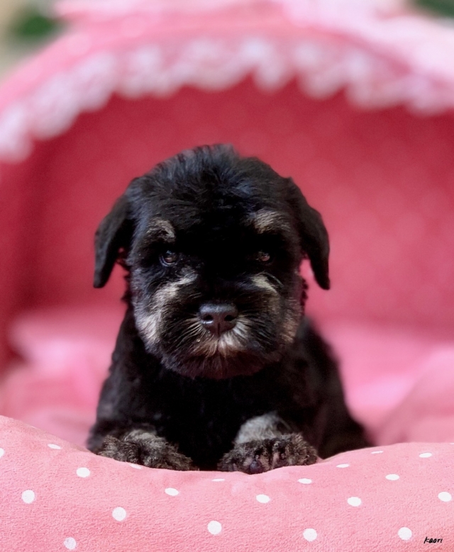 シュナウザーを主力にされているブリーダーさんだと認識しており、ボスちゃんはどうかなあと正直不安でしたがとても可愛く健康的なボスちゃんをいただきました。 掲載されていた写真より実物は想像以上に可愛くて即決し見学させていただいたその日に連れて帰りました。連絡をして、翌日行きますぅって勝手な申し出にも関わらず敏速かつ親切に対応して頂き大満足です。契約に対しても一つ一つ丁寧に説明してくださり、わかりやすかったです。この度は可愛いボスちゃんとのご縁をいただき、本当に有り難うございました。 (大阪府 女性)